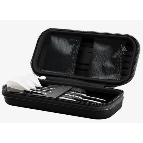 Dank seiner robusten Hartschale schützt das Takoma Ihre Darts optimal. Das kratzfeste Innenfutter bietet Platz für drei vollständig montierte Darts, während Reißverschlusstaschen zusätzlichen Stauraum für Zubehör wie Ersatzflights, Schäfte, Swiss Points oder Ihr Swiss Point Tool bieten – Stil und Funktionalität vereint in einem hochwertigen Etui.